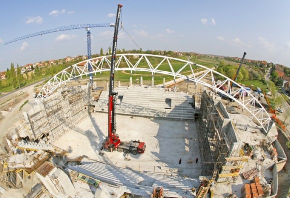 Montaža glavnog nosača sportske hale u Inđiji dužine cca 100m.